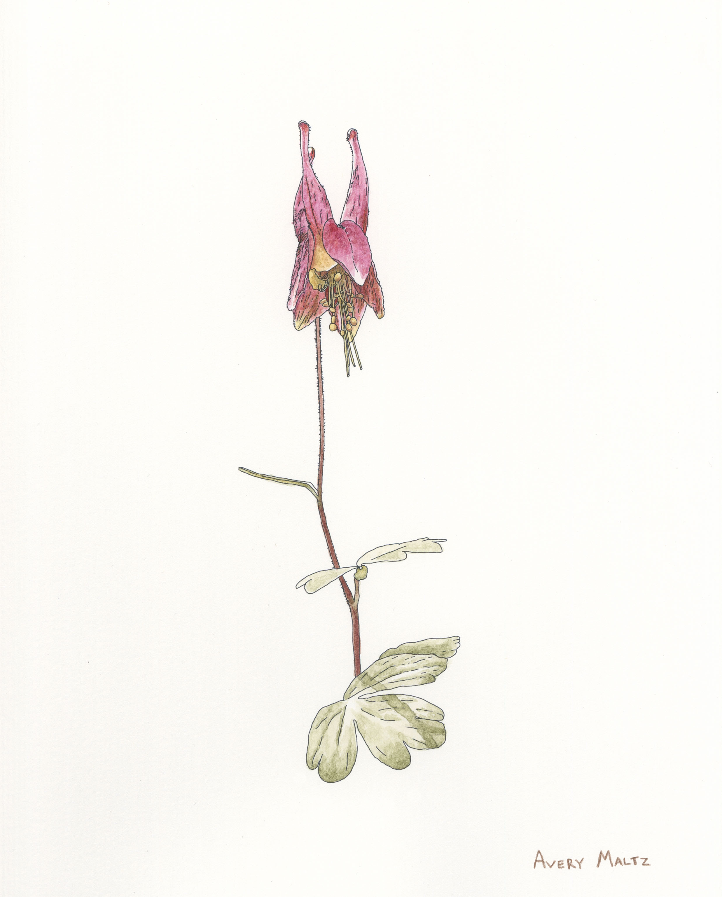 8×10″ Cochineal insect ink, redbud flower ink, lilac flower ink, lichen ink, and pen on paper